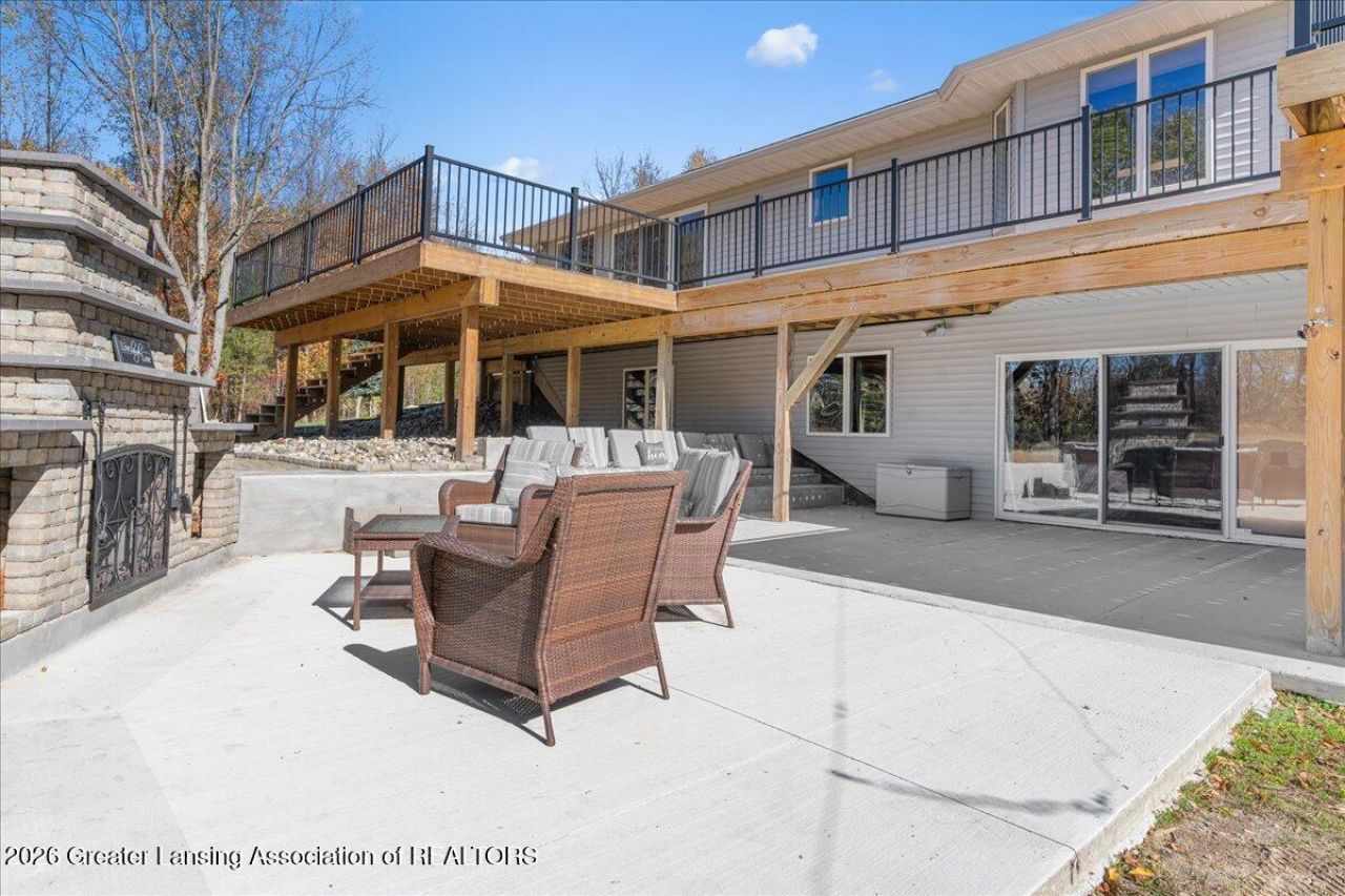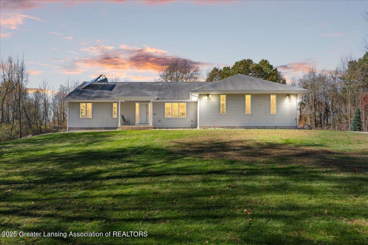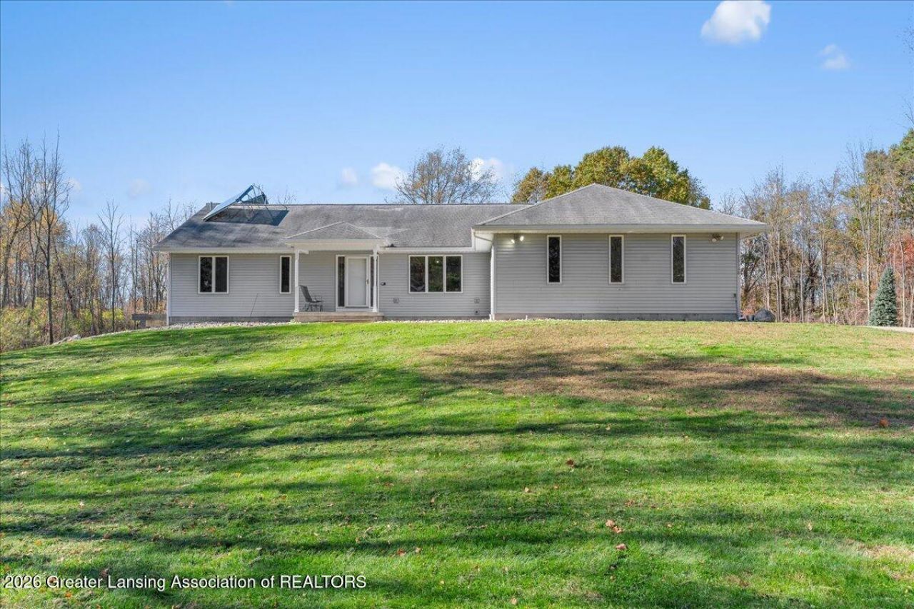 This beautiful, custom-built executive ranch sits atop nine secluded, wooded acres, offering exceptional privacy and natural beauty. The home features a spacious main-floor primary suite with an en-suite bath, large walk-in closets, a marble shower, and a relaxing whirlpool tub. An open floor plan with cathedral ceilings enhances the sense of space, while EnergyStar efficiency ensures comfort and performance throughout. The fully finished walkout lower level provides additional living space with a cozy rec room and fireplace, two generous bedrooms, and a full bath?perfect for guests or family. A true highlight is the impressive nearly 4,000 sq. ft. pole barn. Designed for versatility, it includes two separate heated spaces, two 14 access doors on one side, plumbed for bath/kitchen