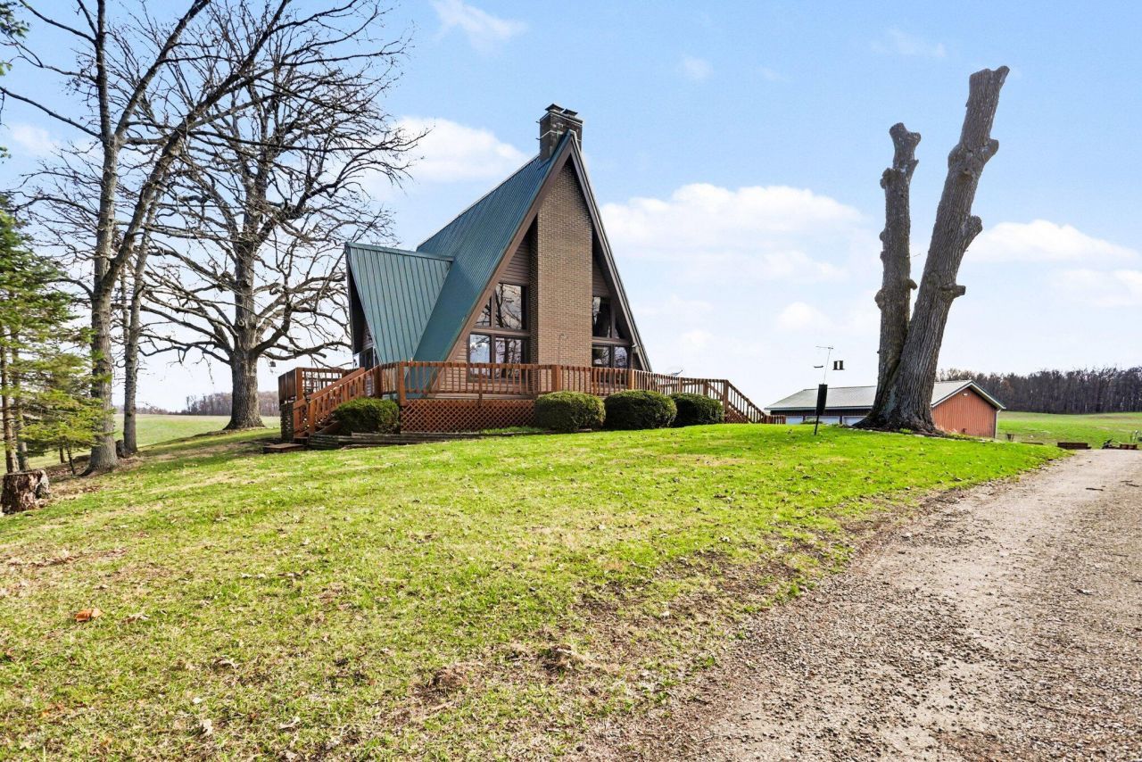 10.1 acre A-Frame homestead! Gated 1/4mi lane leads to 4BR/3BA home w/ dual masters (LL some accessible features w/ kitchenette). Updates: 3yr Geothermal, 10yr Metal Roof, newer appliances. Efficient living. Grounds feature McKee's Creek on one side & an artisan pond w/ cedar cabin & outhouse on the other. 3-car heated shop w/ service pit & outdoor H/C shower by driveway for easy cleanup. Includes open barn, shooting range, fire pit, asparagus patch & wrap-around deck. A rare, high-utility retreat surrounded by fields. Move-in ready & designed for adventure!