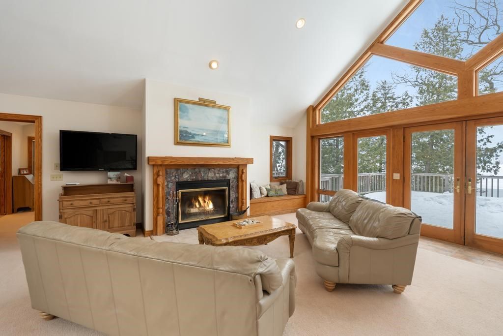 Welcome to this beautiful lakefront home in Cross Village, offering 166 feet of private, sandy Lake Michigan frontage with sweeping water views. Thoughtfully designed for both relaxation and entertaining, this spacious seven-bedroom, three-and-a-half-bath home provides plenty of room for family and guests to gather while still offering spaces to unwind and enjoy the peaceful surroundings. The main level features an inviting open floor plan that connects the kitchen, dining, and living areas, all oriented toward the lake. Two fireplaces create a warm and comfortable atmosphere throughout the home. Just off the living space, a large lakeside deck and screened porch provide the perfect setting for morning coffee, outdoor dining, and iconic Lake Michigan sunsets. The walkout lower level includes in-floor heat, a spacious family room with a wet bar, and additional bedrooms or home office space?ideal for guests, kids, or extended stays. Above the extra-deep three-car garage is an 800-square-foot bunk room with plumbing in place for a fourth full bathroom?perfect for additional guest quarters or flexible living space. Despite its peaceful and secluded setting, the home is equipped with fiber-optic internet, providing fast, reliable connectivity for remote work, streaming, or staying in touch while enjoying the beauty of Northern Michigan. Located in one of Northern Michigan's most beautiful and peaceful areas, the property is surrounded by abundant wildlife and endless opportunities for year-round recreation, including boating, swimming, fishing, skiing, biking, and snowmobiling. Nearby historic towns offer charming shops, dining, and local favorites such as Legs Inn and the Crow's Nest. With its stunning setting, spacious layout, and private beach frontage, this home is the perfect gathering place to experience the very best of Northern Michigan lakefront living.