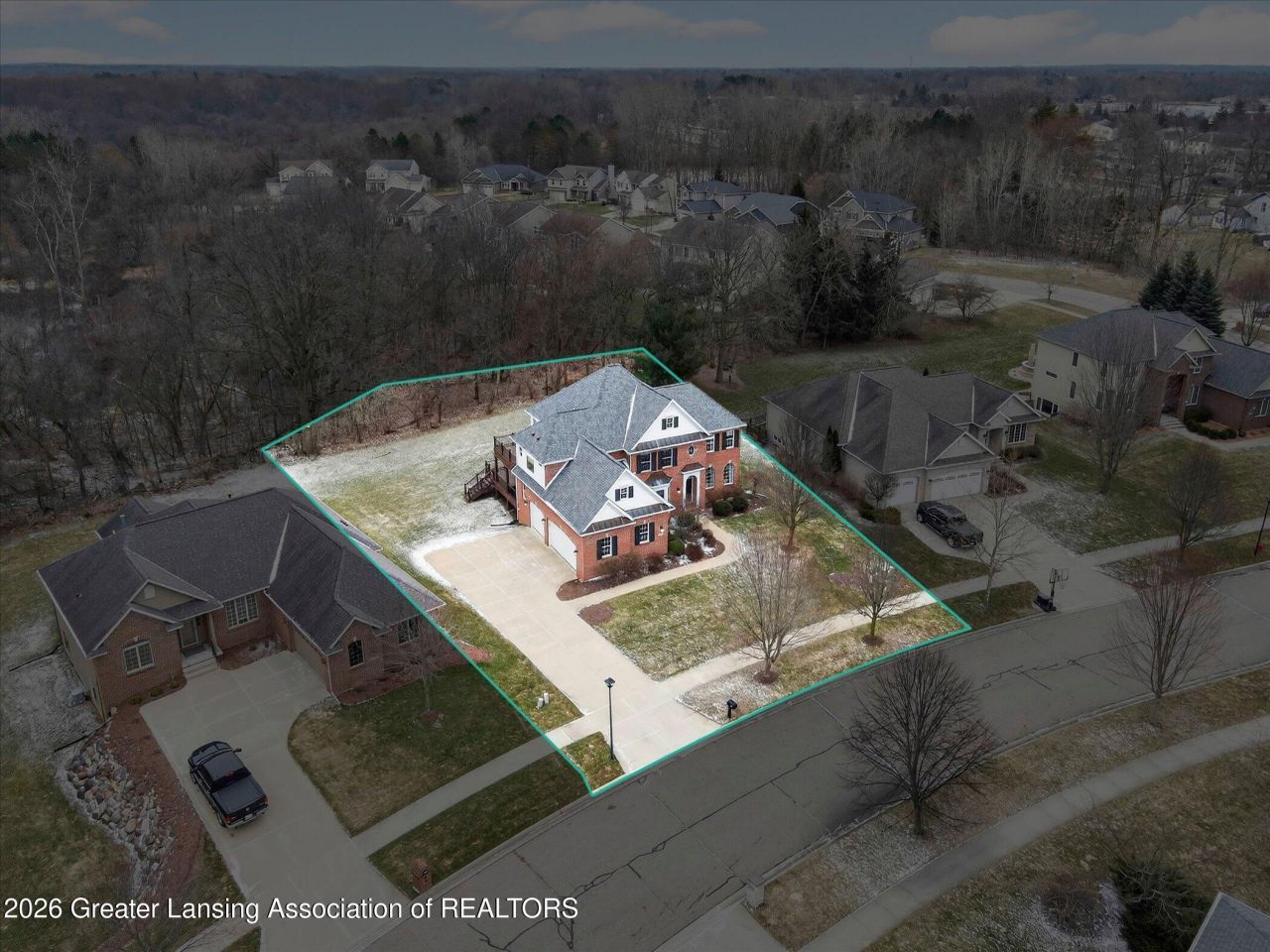 Welcome to 6031 Marietta Way, East Lansing - nestled in the highly sought-after Sierra Ridge subdivision! This stunning 5-bedroom, 4-full-bathroom two-story home is the total package with thoughtful updates throughout. From the moment you step inside, youll be captivated by the soaring two-story great room, flooded with natural light and anchored by a gas fireplace - the perfect gathering space for any occasion. The beautifully updated kitchen is sure to impress, featuring brand new quartz countertops, stainless steel appliances and tasteful finishes. An open, flowing floor plan seamlessly connects the kitchen to the living and formal dining areas, ideal for everyday living and entertaining alike. A first-floor bedroom with an attached full bathroom offers the perfect flexibility as a private guest suite or home office, along with the convenience of main-floor laundry. Upstairs, retreat to your oversized primary suite - featuring a spa-like ensuite with a soaking tub, walk-in shower, and an expansive walk-in closet. Step through the private door onto your own outdoor porch and take in the tree-lined backyard views. Two additional upstairs bedrooms each boast walk-in closets and share a well-appointed Jack and Jill bathroom. The lower level is an entertainers dream, complete with a second full kitchen, an additional bedroom and full bathroom, and a spacious living area - perfect for hosting, or added flexibility. Outside, enjoy your double-decker Trex deck overlooking the lush, tree-lined backyard - the ultimate space to relax and unwind. And for peace of mind, major updates have been completed in recent years including a new roof, A/C, water heater, and more. Homes like this dont come along often, dont miss your chance to make 6031 Marietta Way yours!